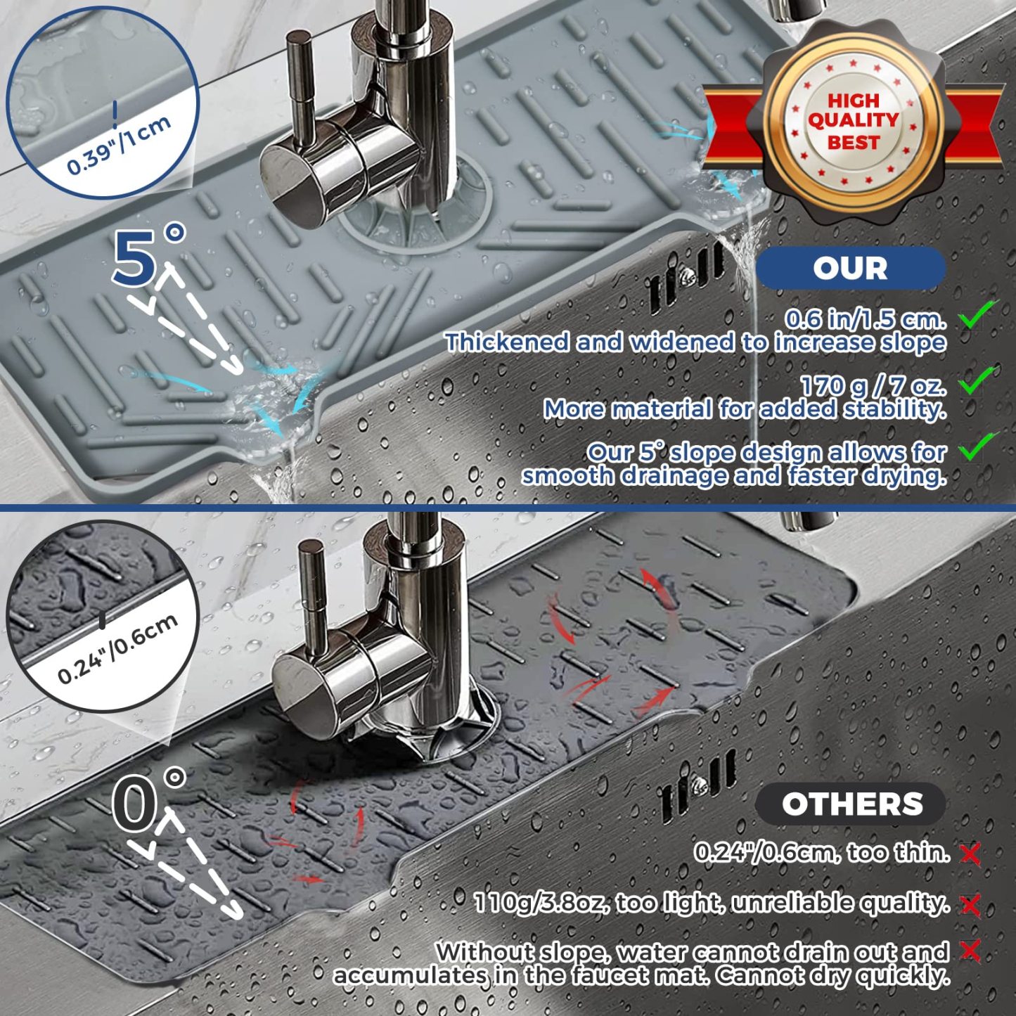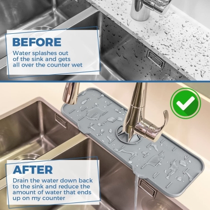 Silicone Faucet Handle Drip Catcher Mat is designed for draining, it gathers water and drips it to the sink. Keep the back of your faucet always dry and clean so you can spend less time cleaning up.